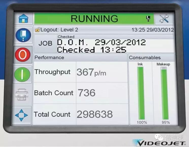 屏幕上實(shí)時顯示墨水/溶劑量和維護(hù)警告